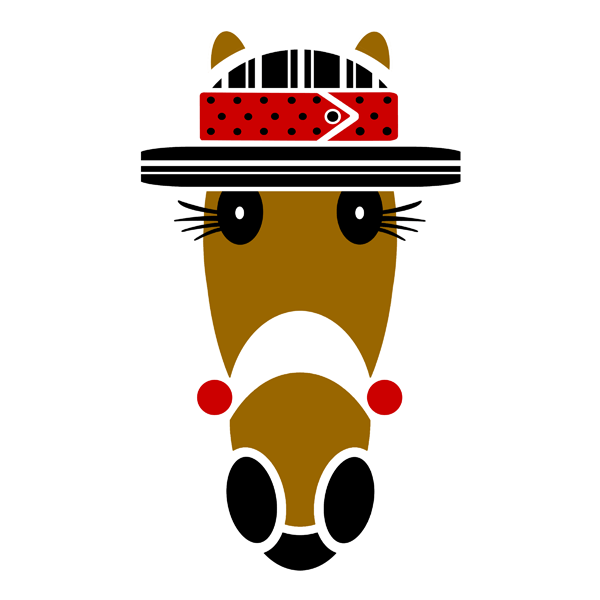 The Charlie Hattingdon classic hat features a black dome and brim with white alternating pinstripes. A handsome bold red tie with black polka dots acts as a hatband. Clever! Red nosebobs complete the look.